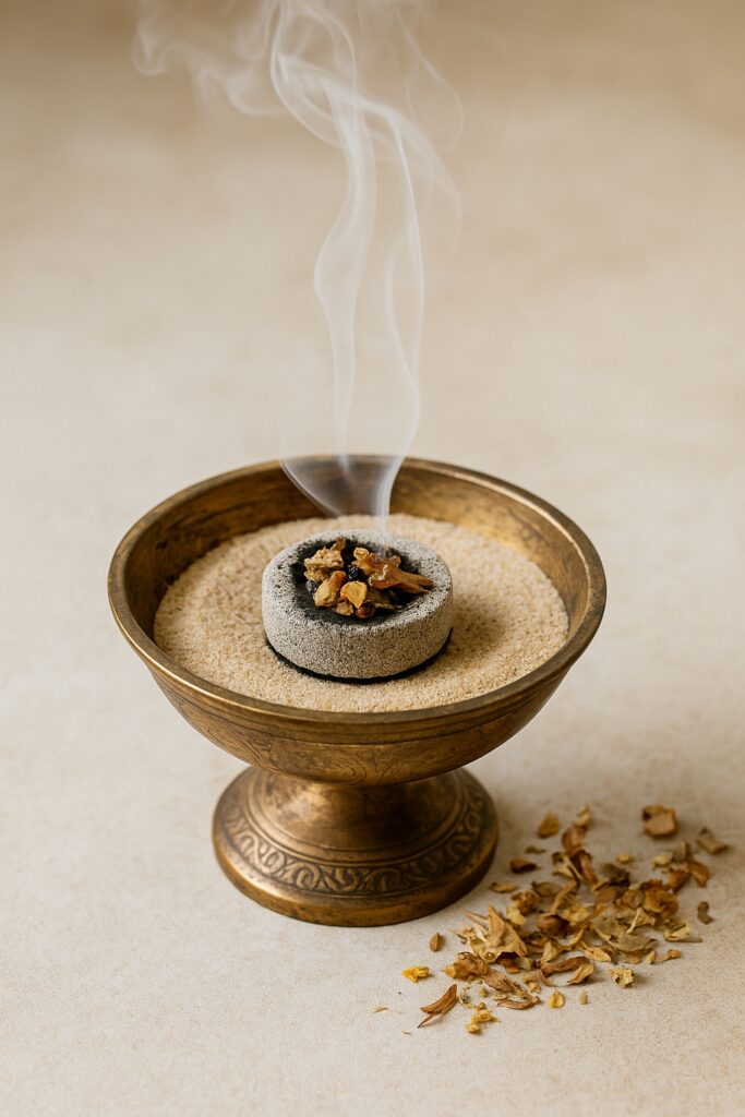 Mit glühender Kohle und ausgewählten Harzen, Kräutern und Wurzeln